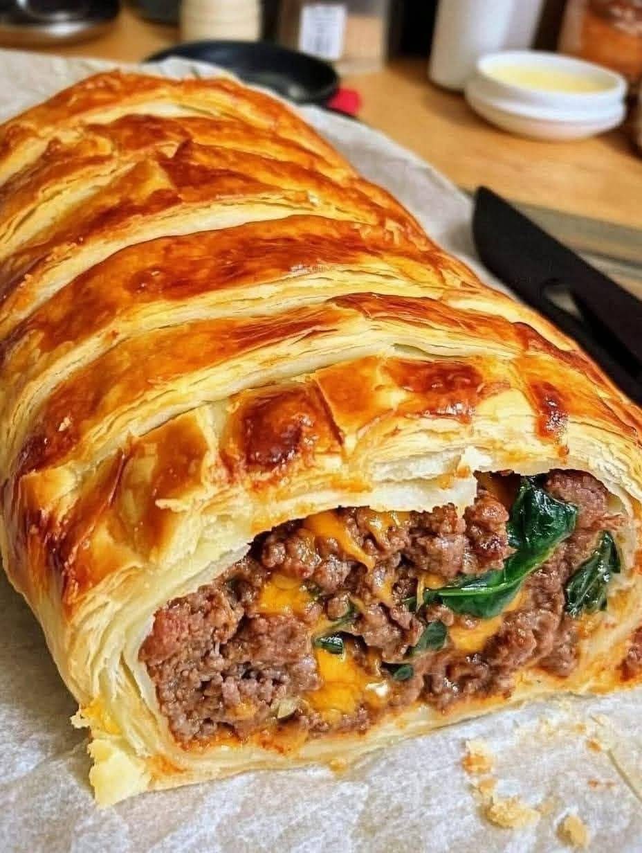 From the first slice, you get that perfectly golden, flaky puff pastry that shatters just right, revealing a rich, savory filling that tastes comforting, hearty, and downright luxurious. It’s one of those dishes that feels fancy enough for a holiday table but cozy enough to make “just because.”