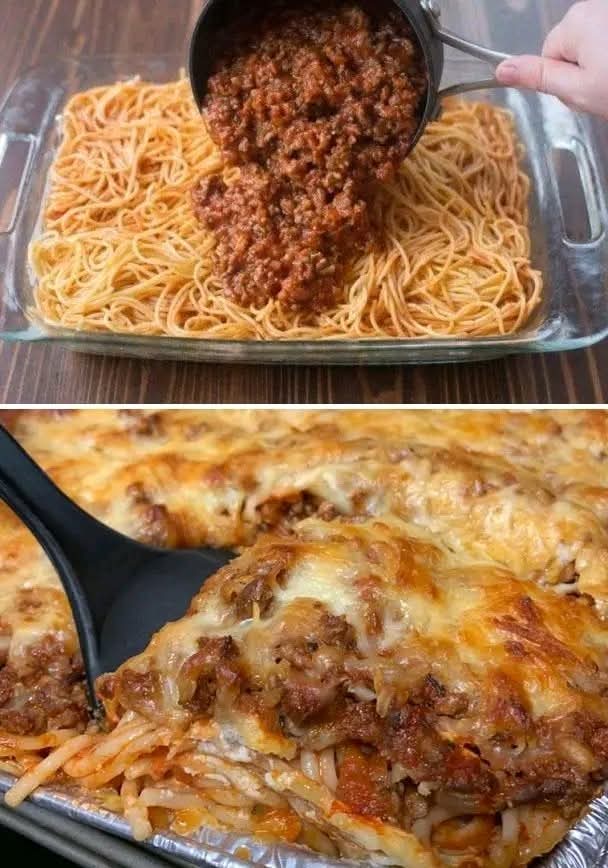 Perfect for busy weeknights, potlucks, family gatherings, or freezer meals, this casserole combines tender spaghetti, savory meat sauce, and a luxurious creamy cheese layer that melts into every bite. It’s the kind of recipe people ask for again and again.