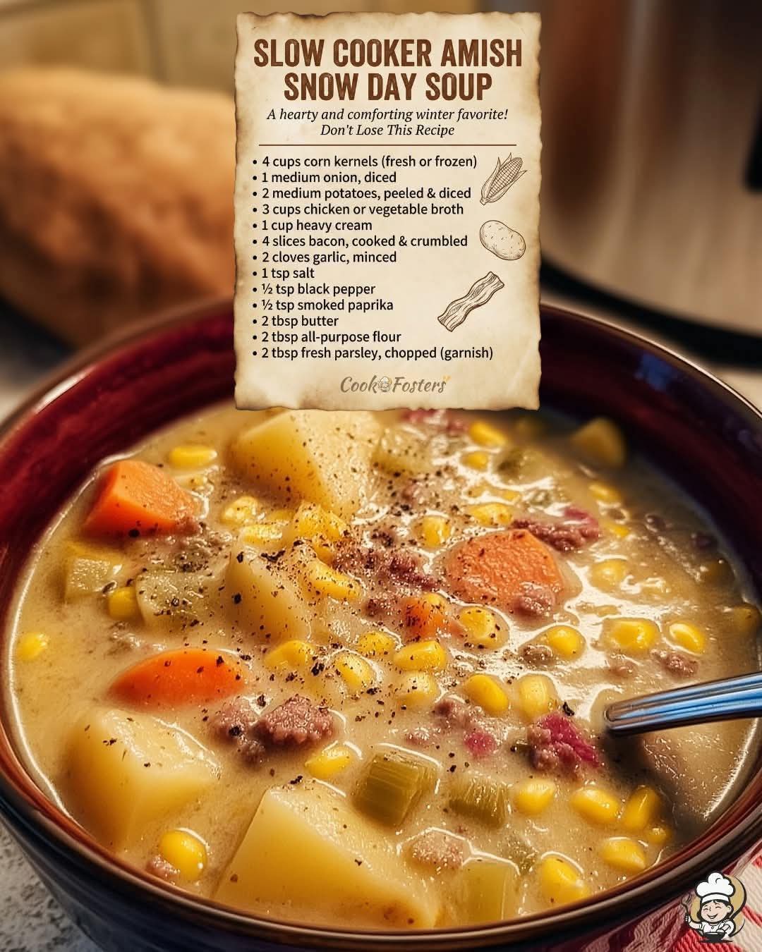 𼣠Slow Cooker Amish Snow Day Soup (Classic Corn Chowder)