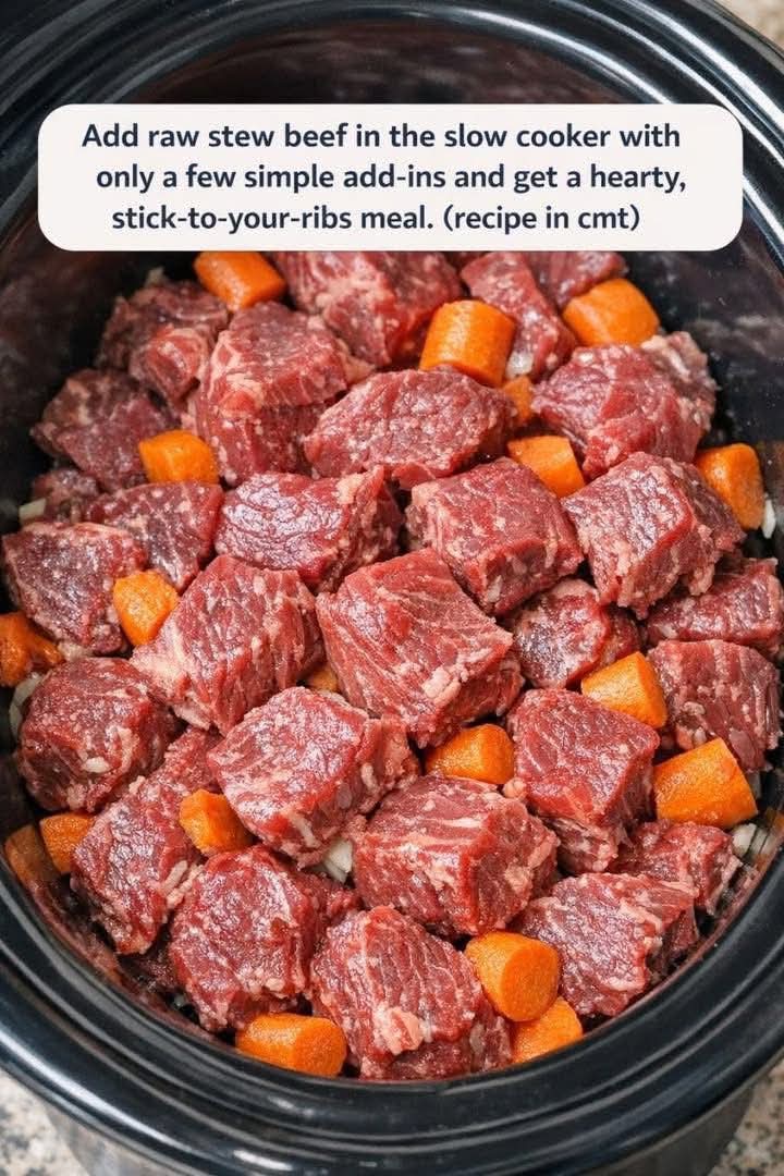 I discovered this method years ago on a busy weeknight when I had no energy to brown meat, dirty extra pans, or babysit the stove. I simply added the raw stew beef straight into the slow cooker, seasoned it well, poured in a few pantry staples, and walked away. Hours later, the house smelled amazing, and the beef was so tender it fell apart with a fork. Since then, this has become a go-to recipe in my home, especially during colder months or hectic days.