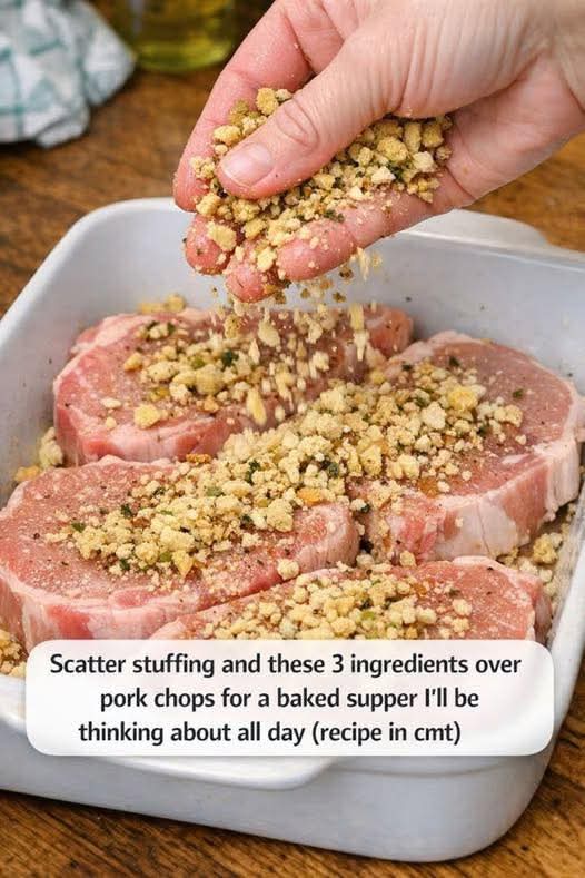 Scatter Stuffing and These 3 Ingredients Over Pork Chops – The Easiest Comfort Dinner Ever 🤤
