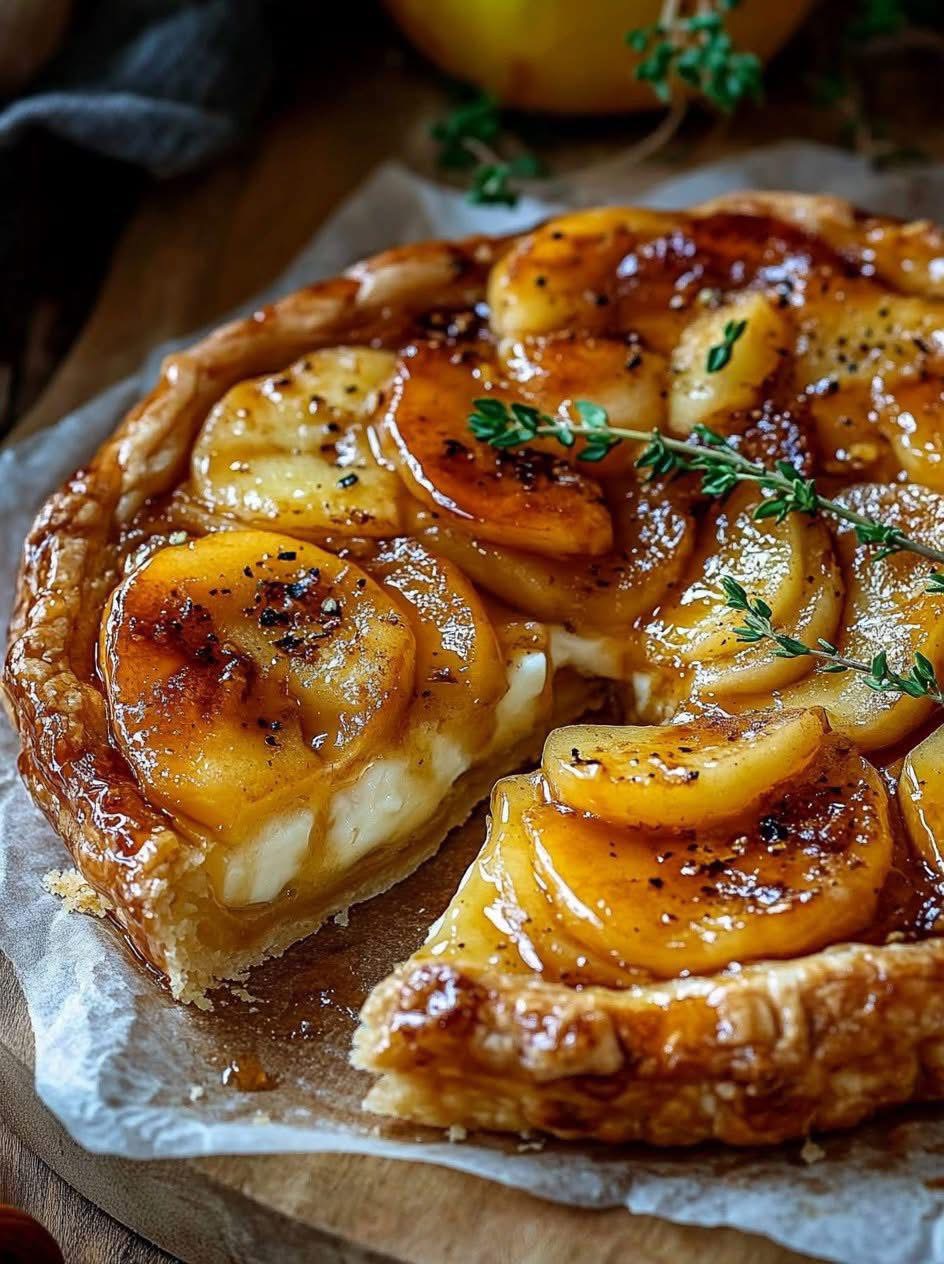 2. Top with remaining apples, fresh thyme, and a drizzle of honey or maple if desired.