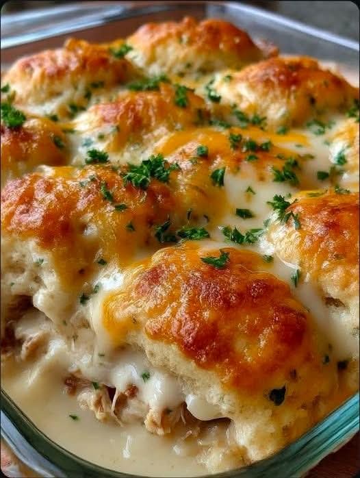 🧀 Creamy Cheesy Chicken Biscuit Bake