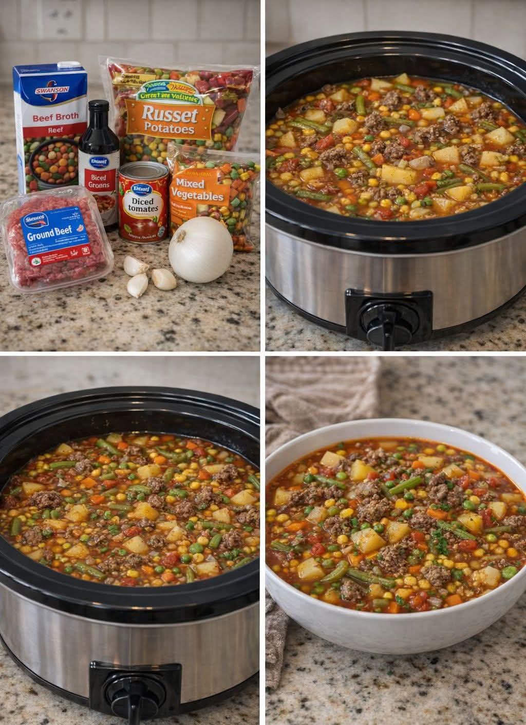 Slow cooker: Brown beef first, then dump everything in and cook on LOW 7–8 hrs or HIGH 4–5 hrs.
