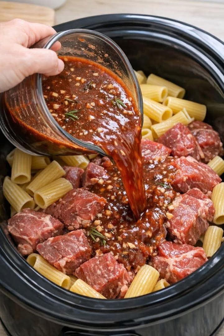 If you want thicker gravy, remove the beef at the end, whisk 1 tsp cornstarch + 1 tbsp water into the liquid, and cook 10–15 minutes more on HIGH.