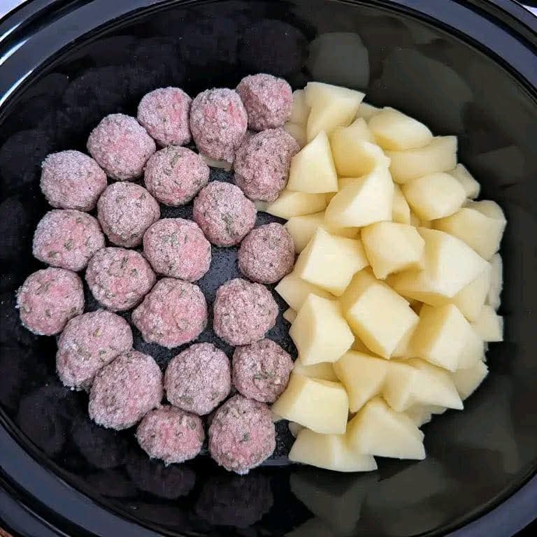 🥔 Crockpot Meatballs & Potatoes (4 Ingredients)