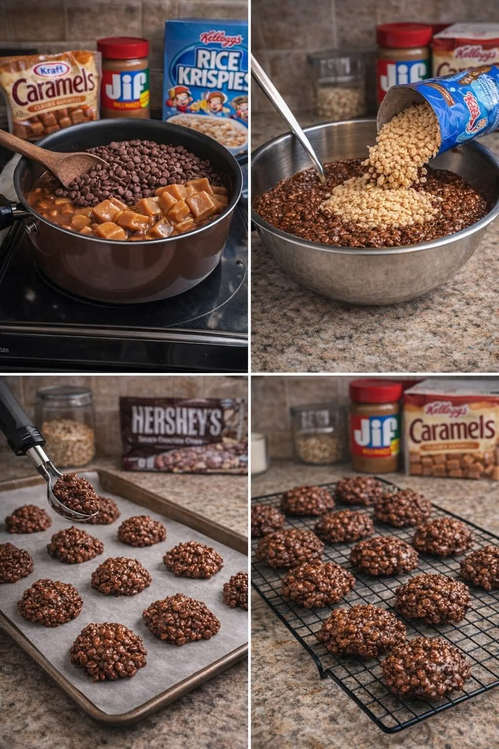 Fold in chocolate chips, caramel pieces, and crushed cereal.