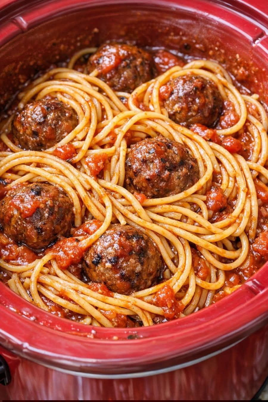 Place the frozen meatballs into your slow cooker and pour the entire jar of pasta sauce over them. Stir to coat.
