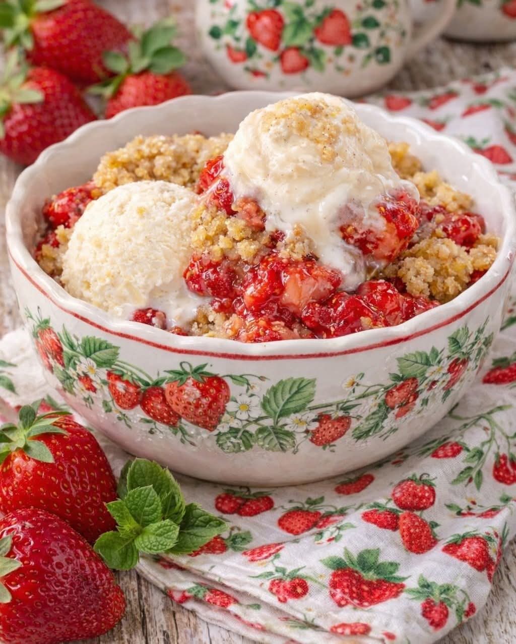 In a large bowl, mix strawberries, sugar, lemon juice, cornstarch, and vanilla.