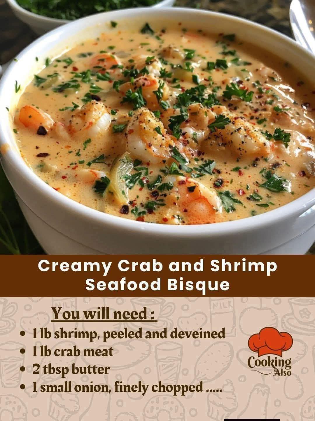 🦀🦐 Crab and Shrimp Seafood BisqueA rich, creamy, restaurant-style seafood bisque packed with sweet crab and tender shrimp. Perfect as a comforting soup or elegant starter. 😋🧾 Ingredients2 tbsp butter1 tbsp olive oil1 small onion, finely chopped2 cloves garlic, minced1 small carrot, finely diced1 celery stalk, finely diced2 tbsp all-purpose flour2 cups seafood stock (or … Read more