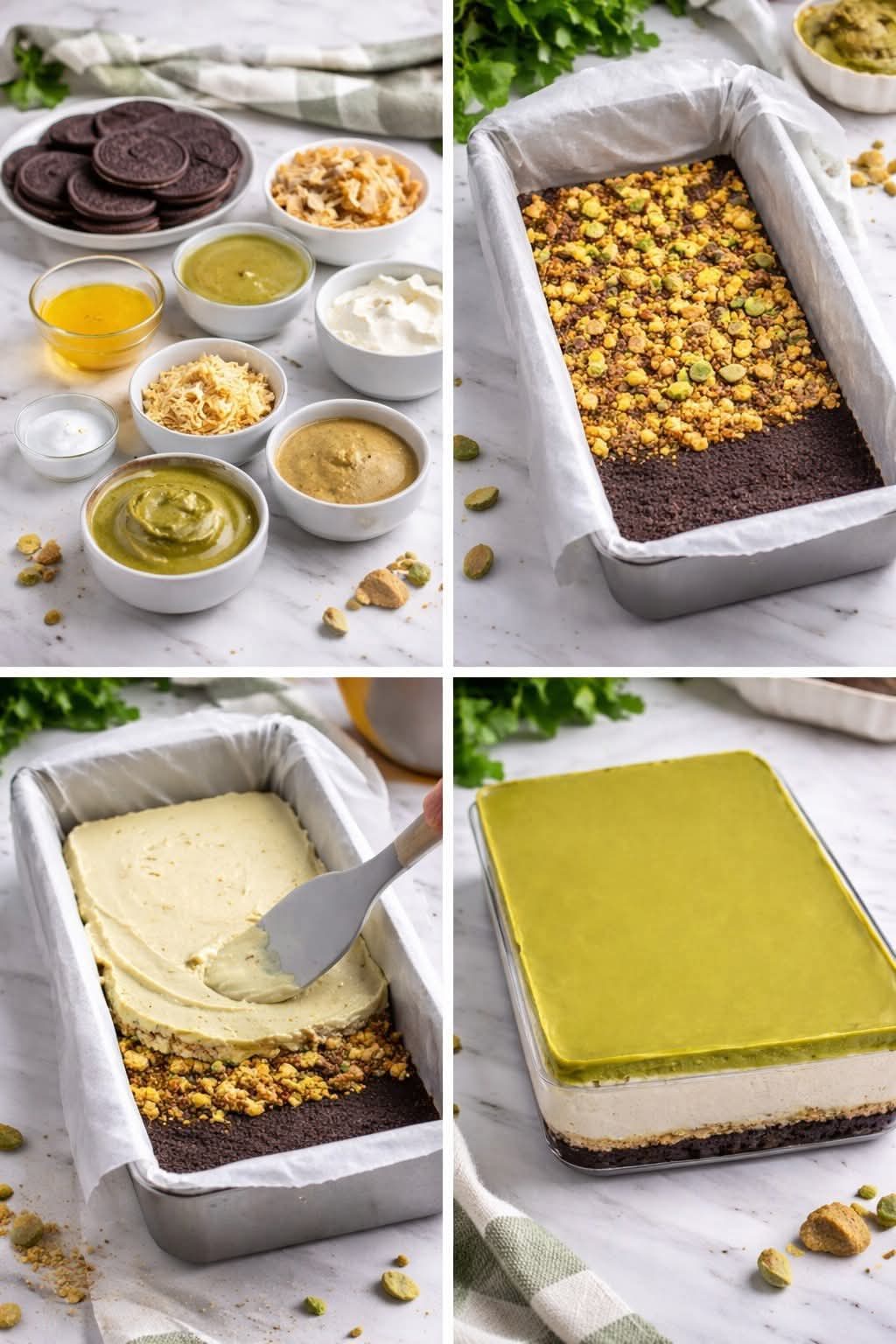 Here’s a delicious recipe for 3-Layer Pistachio Cheesecake Bars 🍰💚